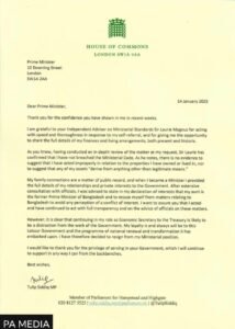 এই পদত্যাগের পর টিউলিপ সিদ্দিক জানান, “আমি সব ধরনের অনৈতিক কার্যকলাপের বিরুদ্ধে। আমার পদত্যাগ যেন সরকারের কাজে মনোযোগ ধরে রাখতে সহায়ক হয়।”