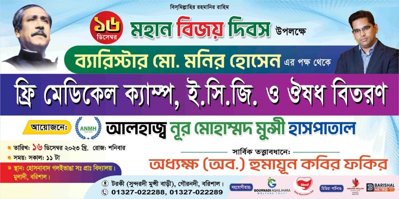 ১৬ই ডিসেম্বর বিজয় দিবস উপলক্ষে আলহাজ্ব নূর মোহাম্মদ মুন্সী হাসপাতালের উদ্যোগে প্রায় ২০০ শত মানুষ কে ফ্রী মেডিকেল ক্যাম্প, ই.সি.জি